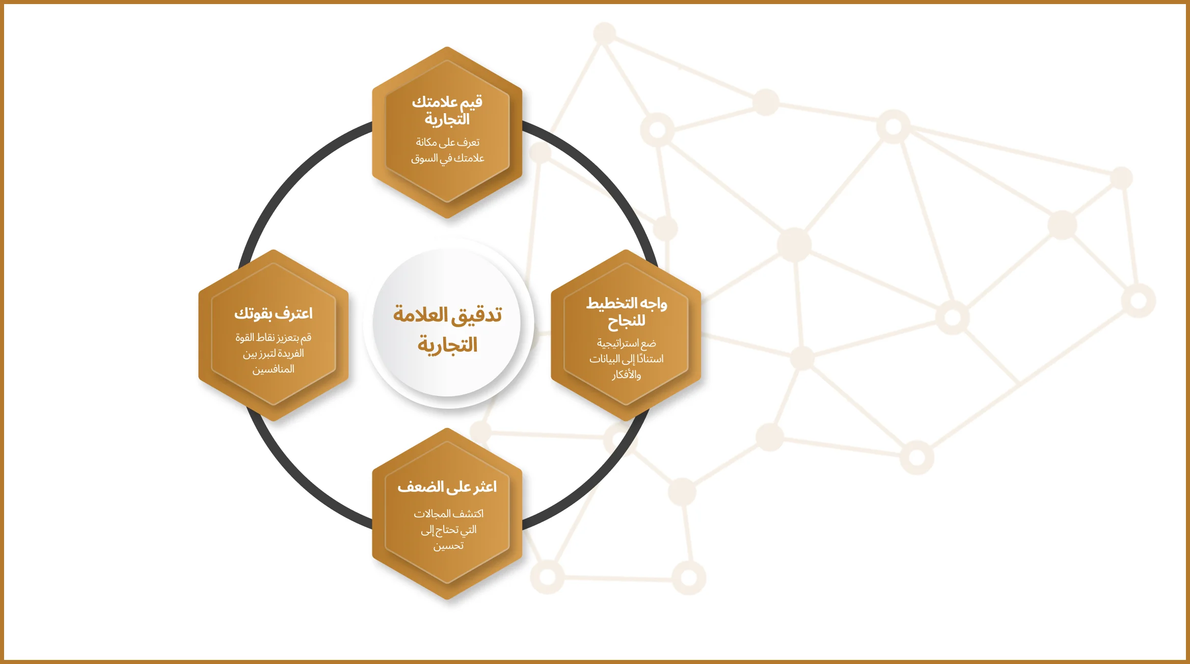 نحن هنا لا نقدم وعود براقة فقط، بل نلتزم بتقديم ما نستطيع. تقدم تقرير فحص العلامة التجارية لدينا نظرة واضحة حول عملك، يُظهر ما الاستراتيجيات التي تنجح لديك وكيف يمكنك تحسين أداء علامتك التجارية من خلال توصيات شخصية.