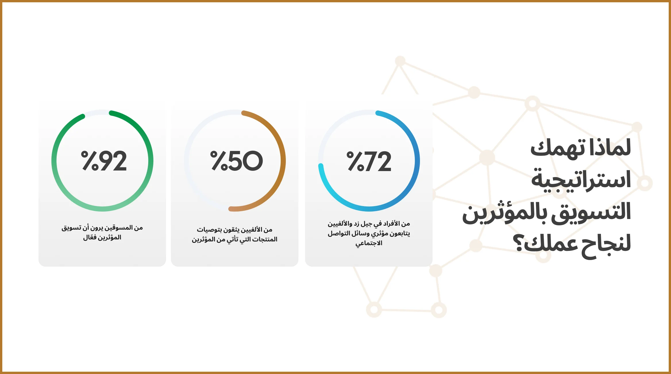 هل تعلم أن حوالي 69% من مستخدمي وسائل التواصل الاجتماعي يثقون بتوصيات المؤثرين؟ يوفر هذا العدد الكبير سببًا لك للبدء في التفكير في التعاون مع المؤثرين لعلامتك التجارية لخلق الوعي وجذب العملاء والتميز في بحر المنافسين الواسع. نحن نساعدك على إحداث فرق في جهودك التسويقية من خلال الاستفادة من قوة كبار المؤثرين الذين يتردد صداهم مع جمهورك المستهدف وعروض الأعمال. معًا، يمكننا رفع صورة علامتك التجارية من خلال الاتصالات الهادفة.